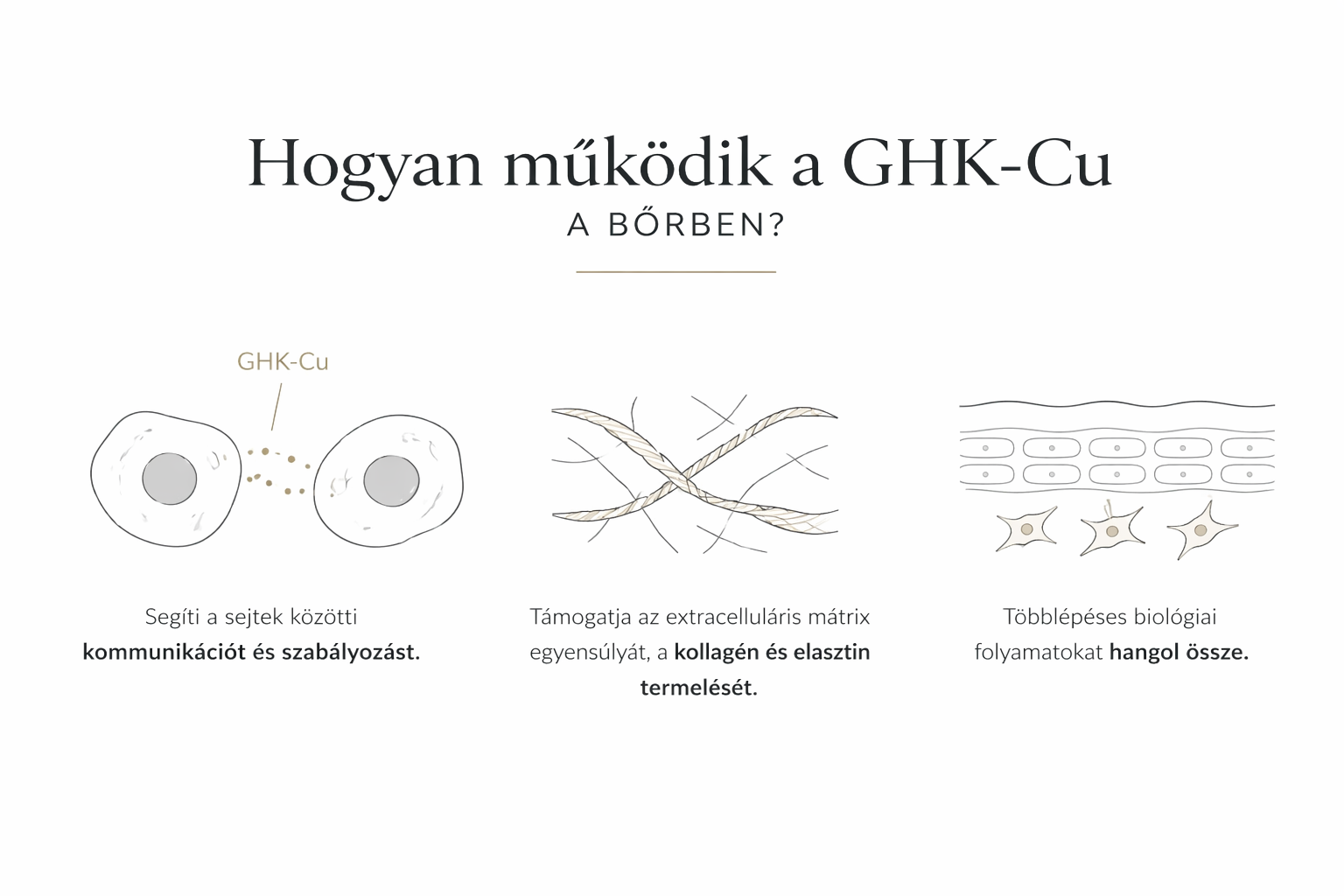 Ebben a környezetben a GHK-Cu nem egyetlen reakciót indít el, hanem több egymásra épülő folyamatot hangol össze.
