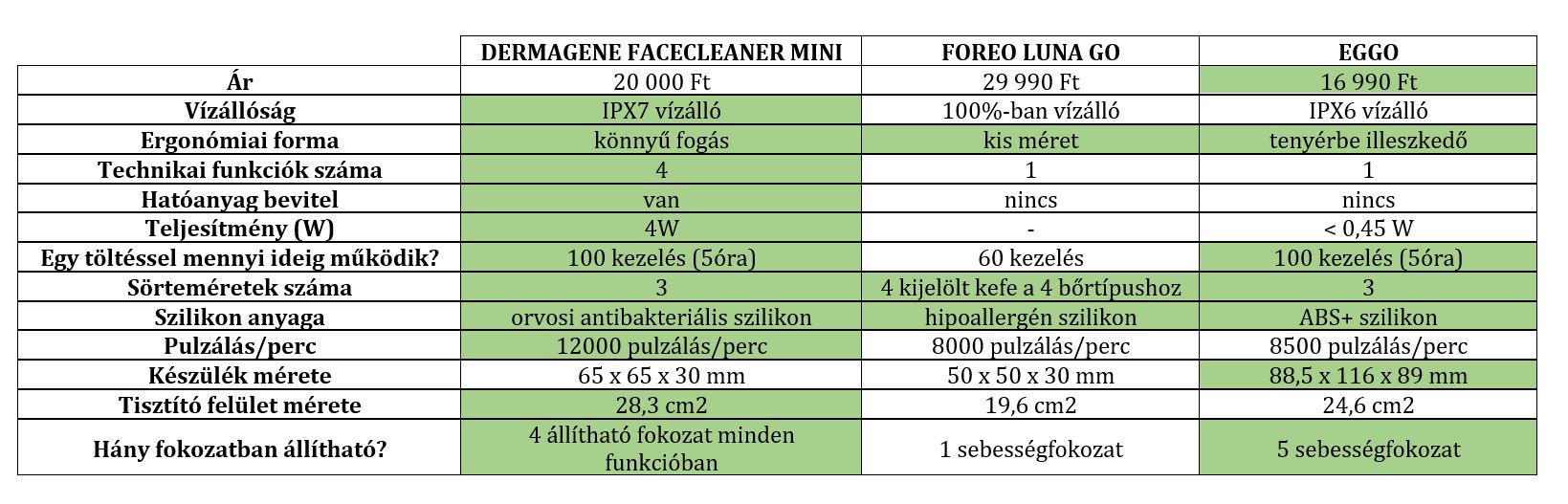 AZ ALÁBBI TÁBLÁZATBAN ÖSSZEHASONLÍTOTTUNK NEKED A FACE CLEANER MINI-T, A FOREO LUNA GO-T ÉS AZ EGGO-T!