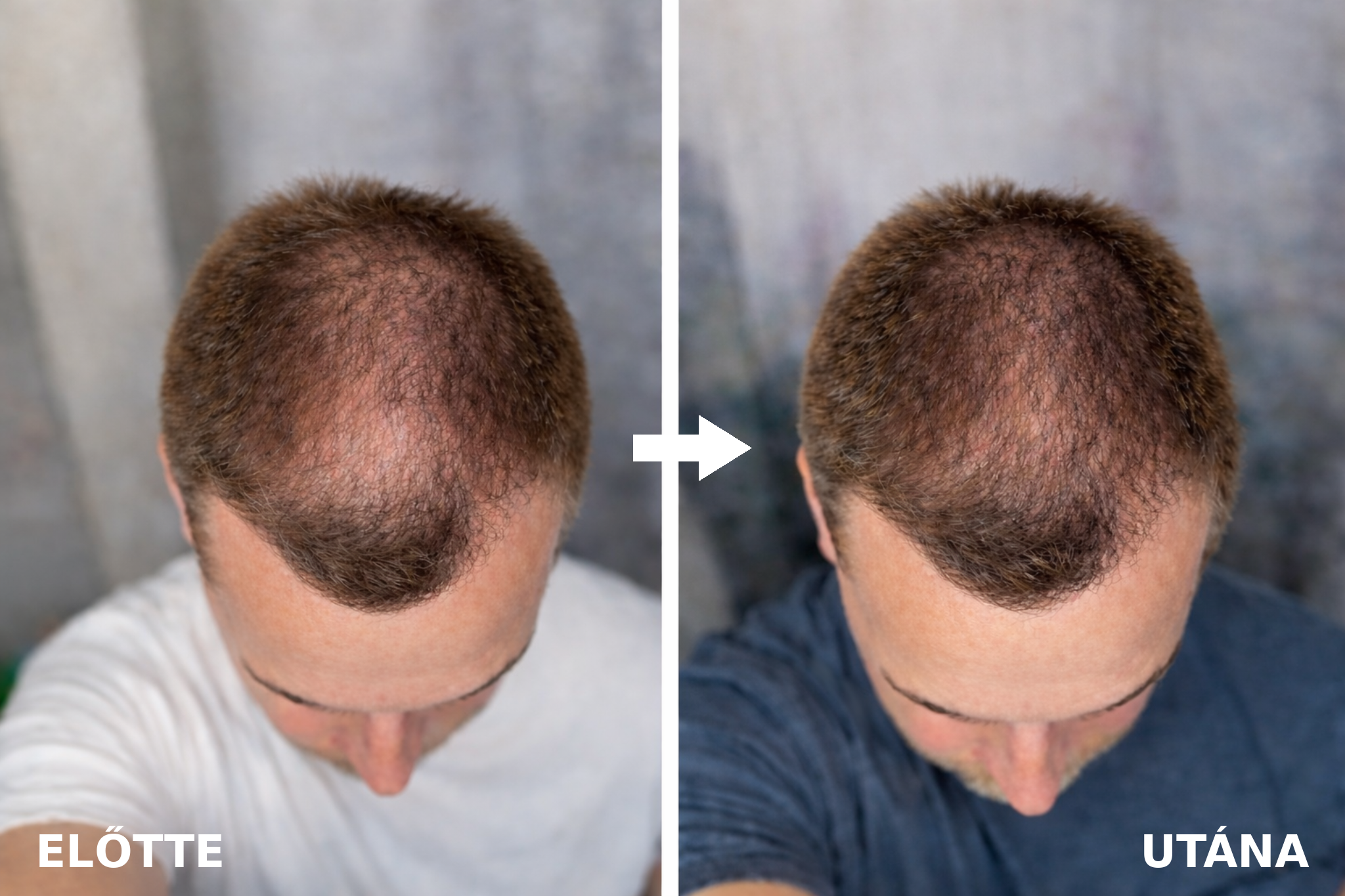 8 hetes kezelés eredménye a DermaGene GrowMyHair 3in1 fésűvel, csomagban DermaGene HairGrowth Szérummal: