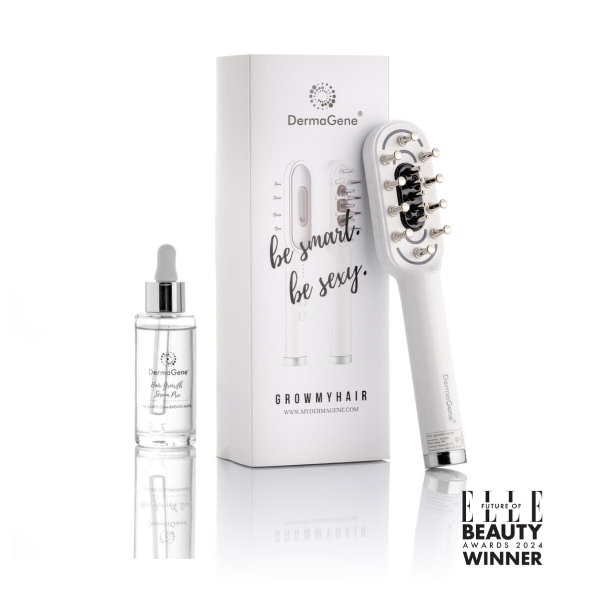 DermaGene® Grow My Hair 3in1 PROFI CSOMAG - Hajhullás elleni, Hajerősítő Fésűvel és Hajnövesztő Szérummal (Fehér)