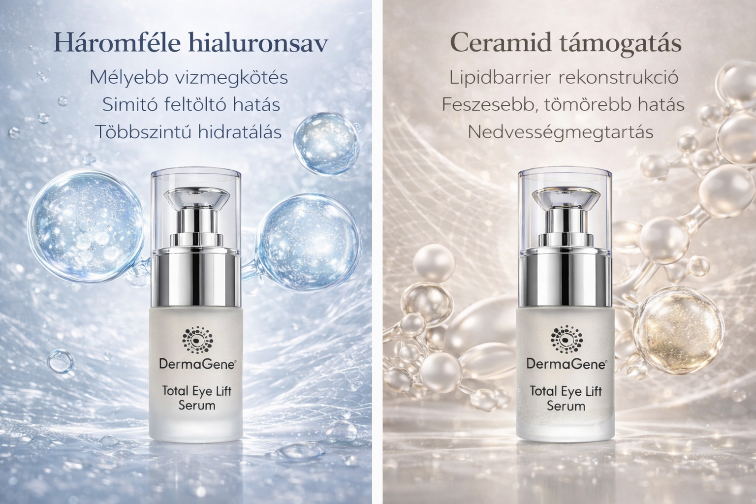 DermaGene® Total EyeLift Szérum - Peptidekben és ceramidban gazdag szemkörnyékápoló bio rózsavízzel (15 ml)